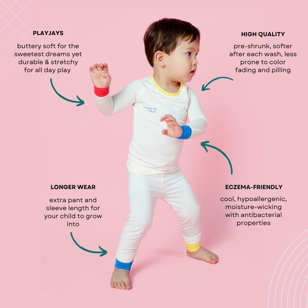 Watch HereOur son had been suffering from eczema since he was a baby. We didn't realize certain fabrics could make it worst - especially at night! We discovered the BEST fabric for eczema was Tencel Lyocell, but there were no kids pajamas made MAINLY of it in the market- so the idea of Tangerine Rêve was born!